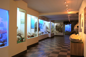 고래상어(7.5m), 백상아리(5m) 등 대형어류부터 작은 고둥까지 약 50,000여점의 생물이 실물로 전시가 되어있어, 해양자연사분야 국내에서 가장 많은 자료를 전시하고 있는 박물관입니다.