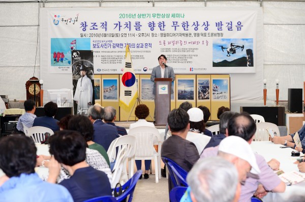 영월군 한반도면 미디어기자박물관에서 ‘2016무한상상세미나-창조적 가치를 향한 무한상상 발걸음’이 18일 11시 한국사진기자협회 이동희 회장, 한국보도사진가협회 김문권 회장, 국민일보 사우회 이형용 회장, 김택현 기자의 부인 이지자 여사와 전현직 언론인 90여명이 참석한 가운데 열렸다.