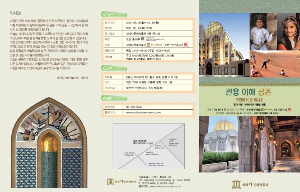 세계다문화박물관과 주한오만대사관이 함께 주최한 이번 전시회는 우리 사회의 도처에 존재하고 있는 이슬람 문화의 오해와 편견들에서 벗어나 균형 잡힌 시각으로 현대 아랍국가인 오만의 현재 모습을 있는 그대로 바라보자는 의미에서 개최되었습니다.