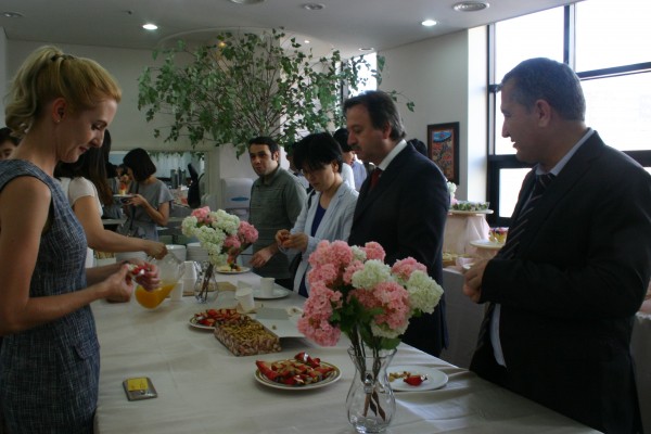 산 타헤리안 이란 대사와 내빈들이 세계다문화박물관 김윤태 관장의 비콘을 연동한