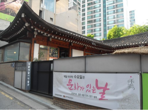 한옥과 양옥으로 꾸며진 짚풀생활사박물관 전경. 1993년 개관했으며 볏짚을 체계적으로 연구해 설립한 박물관으로는 세계에서 유일하다. 입구에 매월 마지막 수요일 ‘문화가 있는 날’ 현수막이 내걸려 있다.