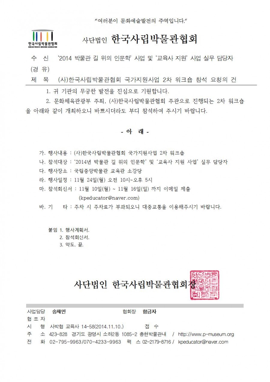 2014년 (사)한국사립박물관협회 국가지원사업 2차 워크숍 개최 안내