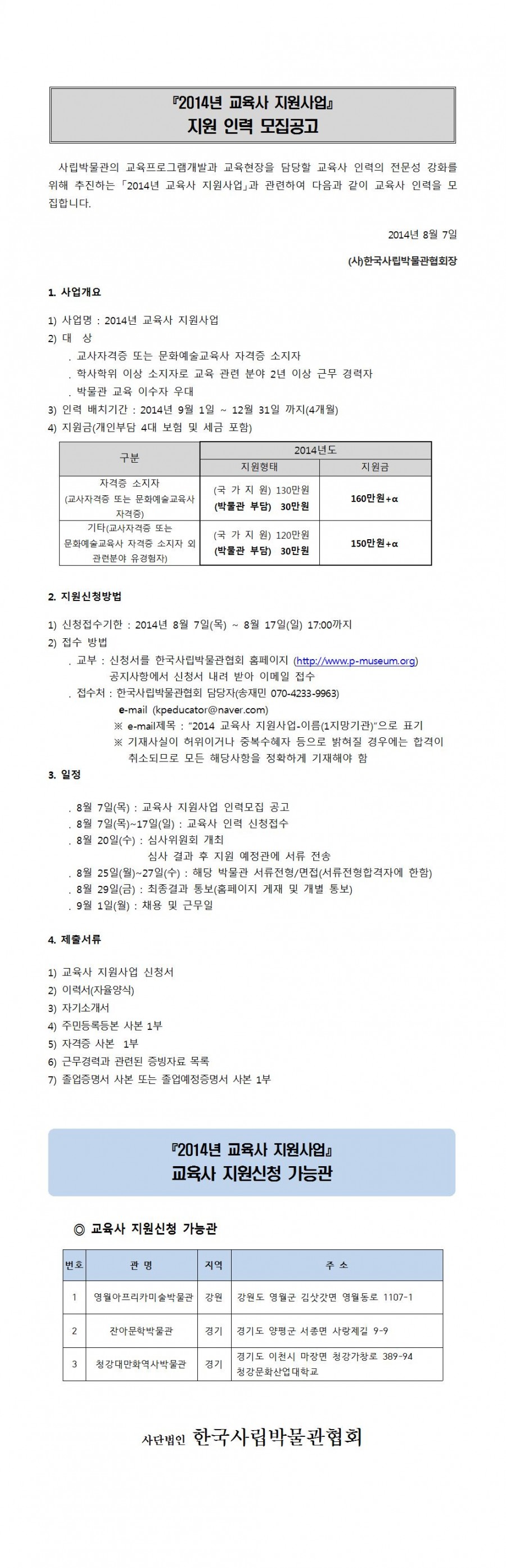 2014 교육사 지원사업 - 지원 인력 모집공고(2차)