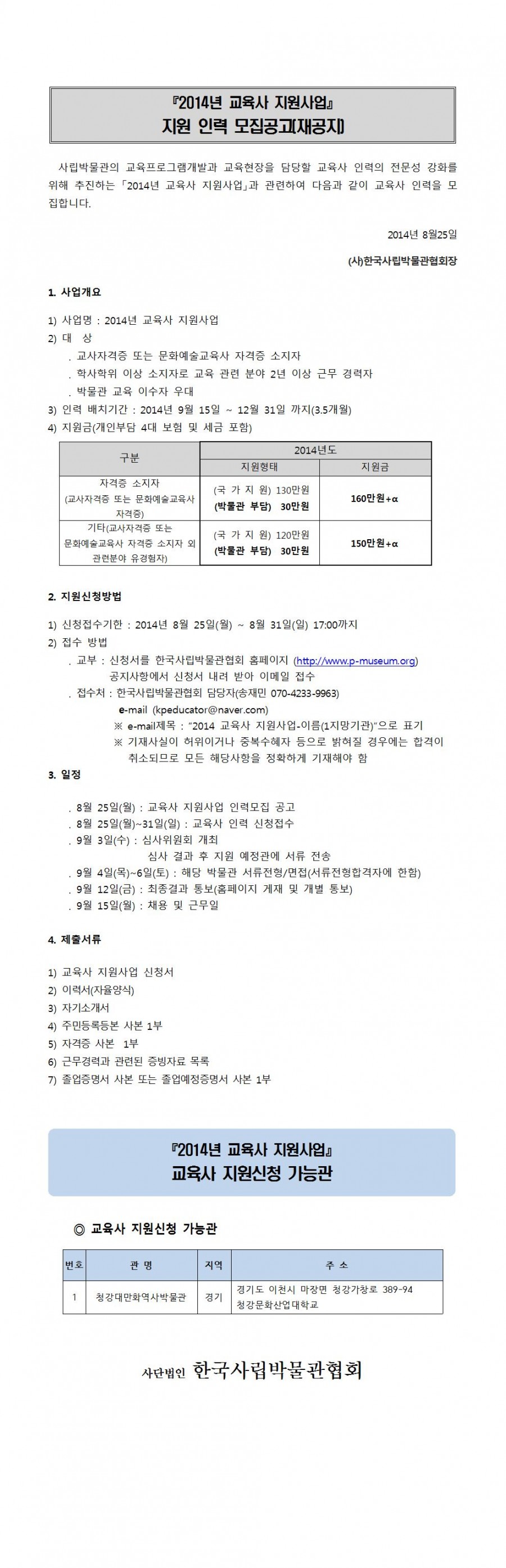 2014 교육사 지원사업 - 지원 인력 모집공고 2차(재공지)